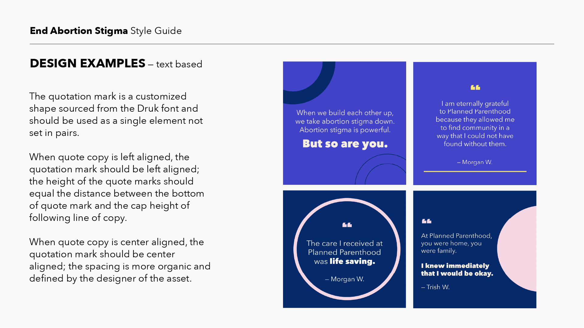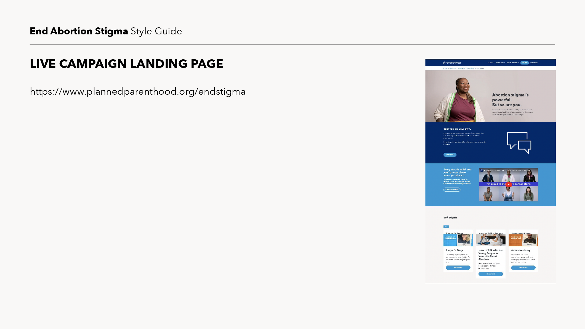 The following creative campaign was developed with PPFA in efforts to tackle abortion stigma nationwide by focusing on the power of storytelling, the power of listening, and the power of community to make abortion a part of every day conversation and dismantle abortion stigma.